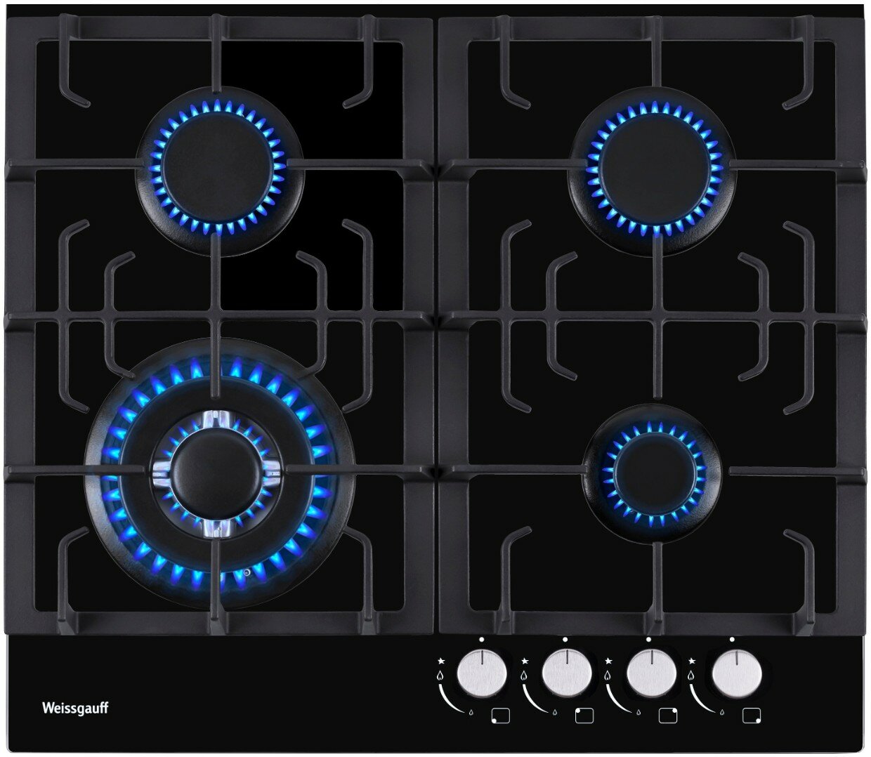 Варочная панель Weissgauff HGG 641 BV WOK-конфорка, 3 года гарантии, автоматический электроподжиг, Рукоятки Hi-Tech, газ-контроль