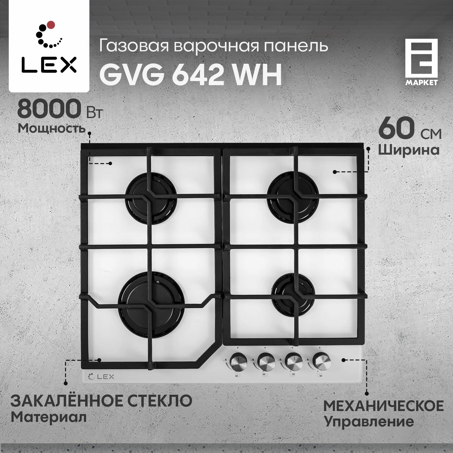 LEX Варочная поверхность LEX GVG 642 WH газовая, белая