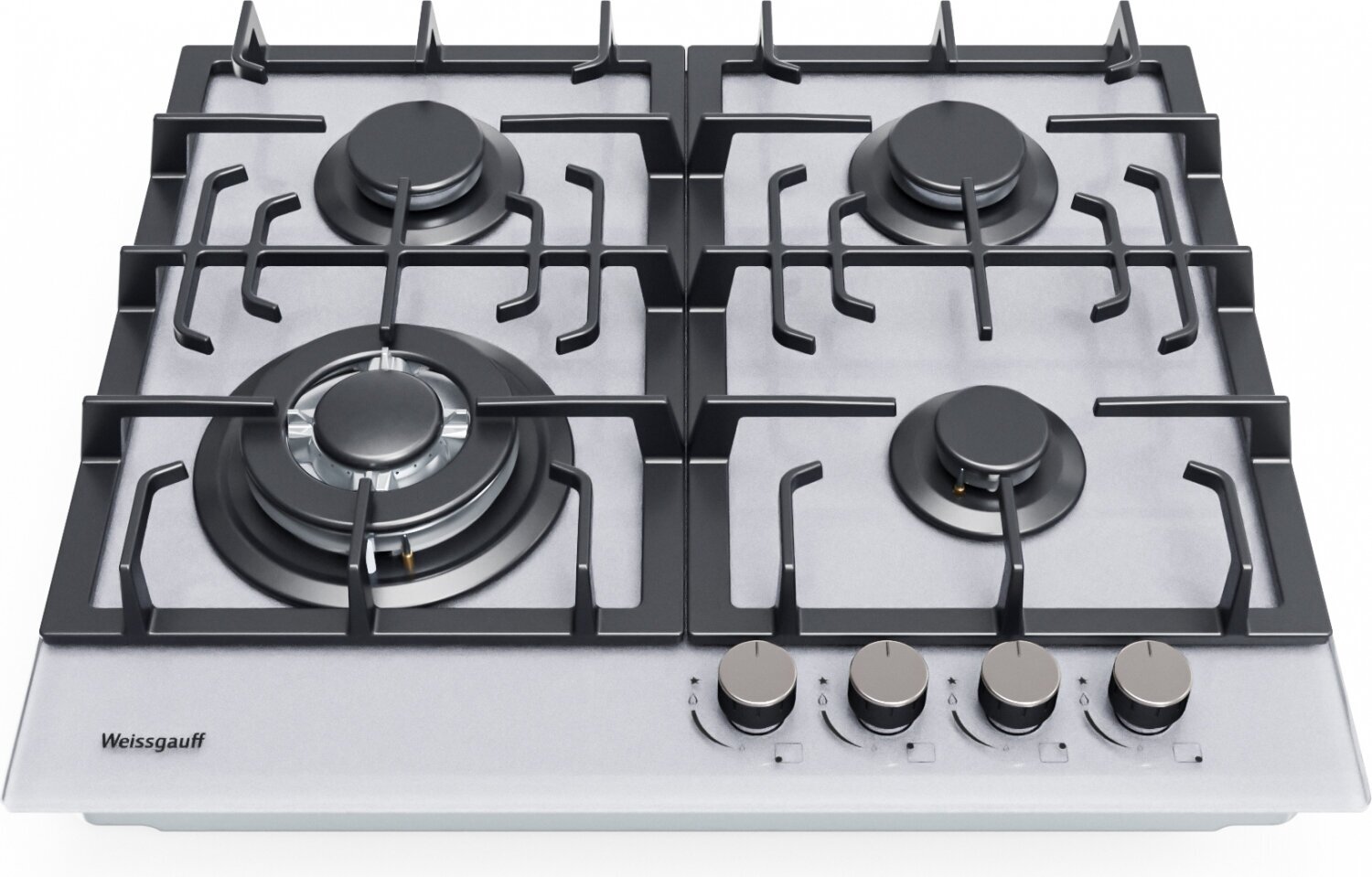 Газовая варочная поверхность Weissgauff HGG 641 WV [закал. стекло, конф.-4 шт, эл-поджиг., газконт., реш.-чугун, белый, серебристый]
