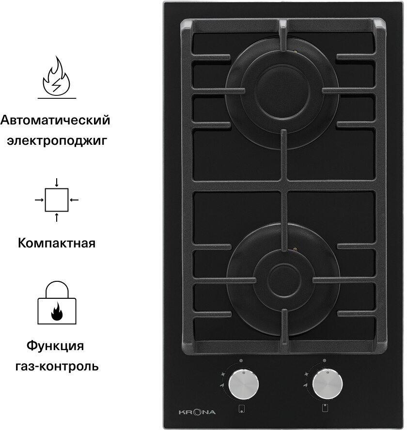 Варочная панель газовая KRONA GALILEO 30 BL встраиваемая независимая черная