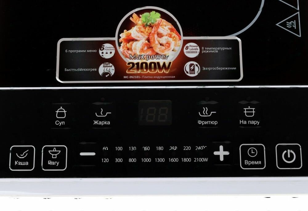 Индукционная плита Midea MC-IN2101, 2100 Вт, 8 уровней мощности, 6 программ, таймер, черный