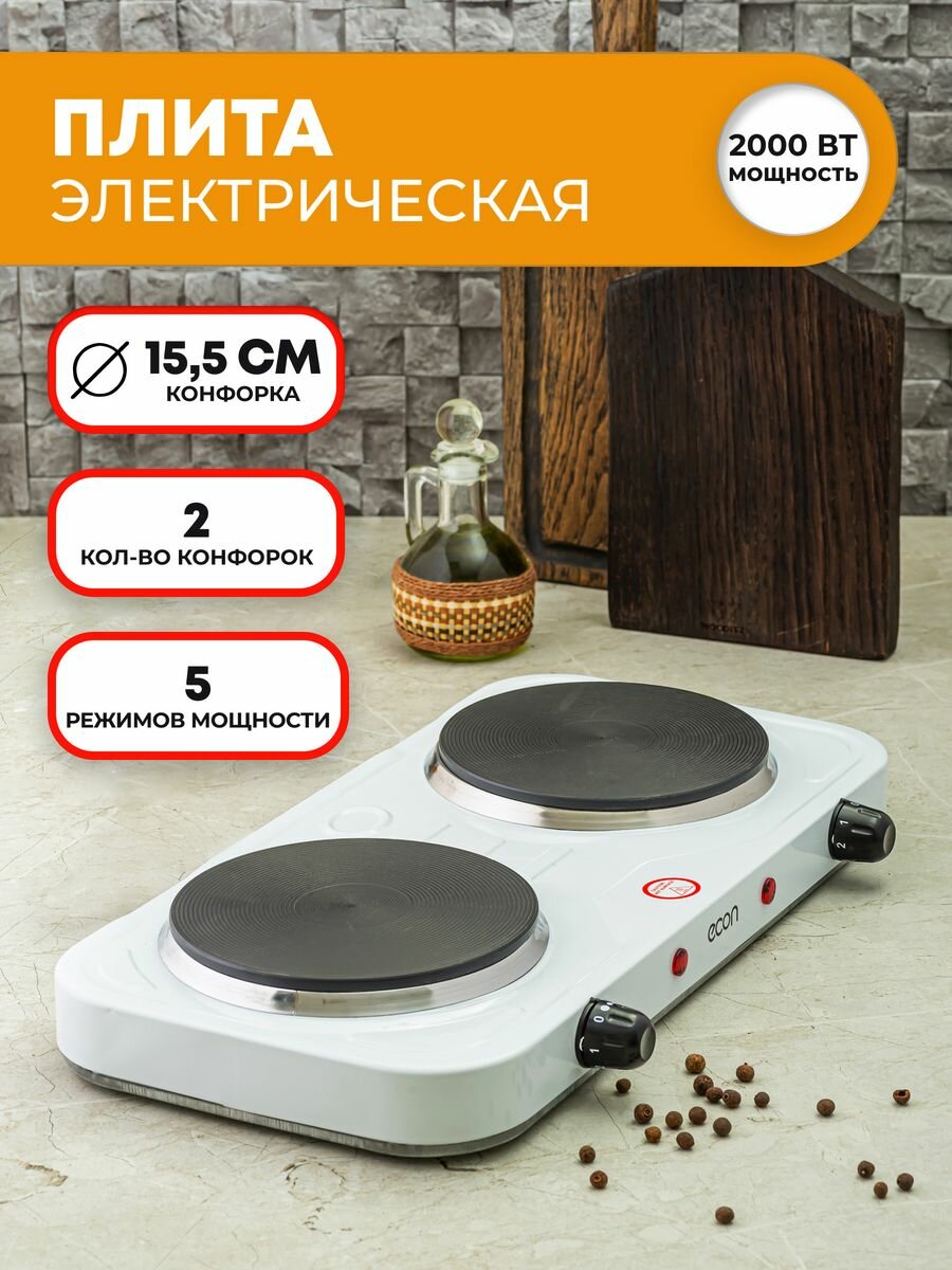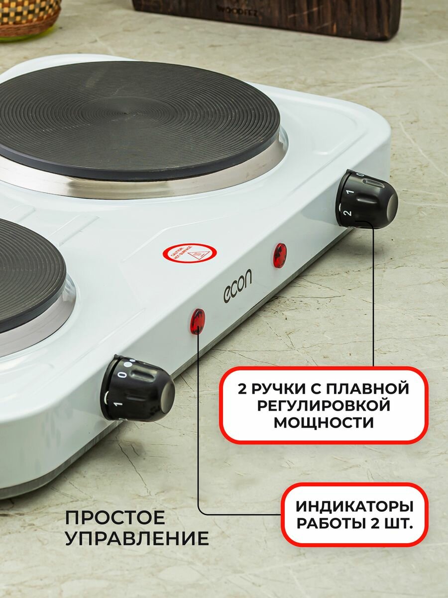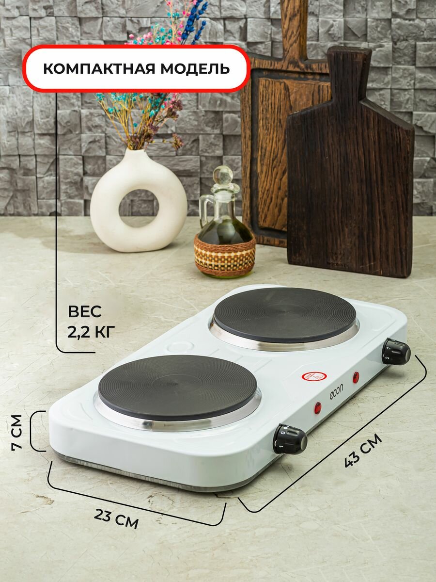 Плитка электрическая ECON ECO-231HP (2 конфорки, чугун, белая)