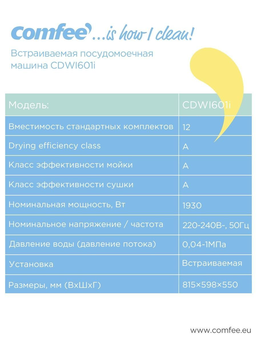 Ниже Вы можете прочитать отзывы на Встраиваемая посудомоечная машина Comfee CDWI601i, ознакомится с подробными характеристиками, посмотреть интересные обзоры и фотографии на Встраиваемая посудомоечная машина Comfee CDWI601i.