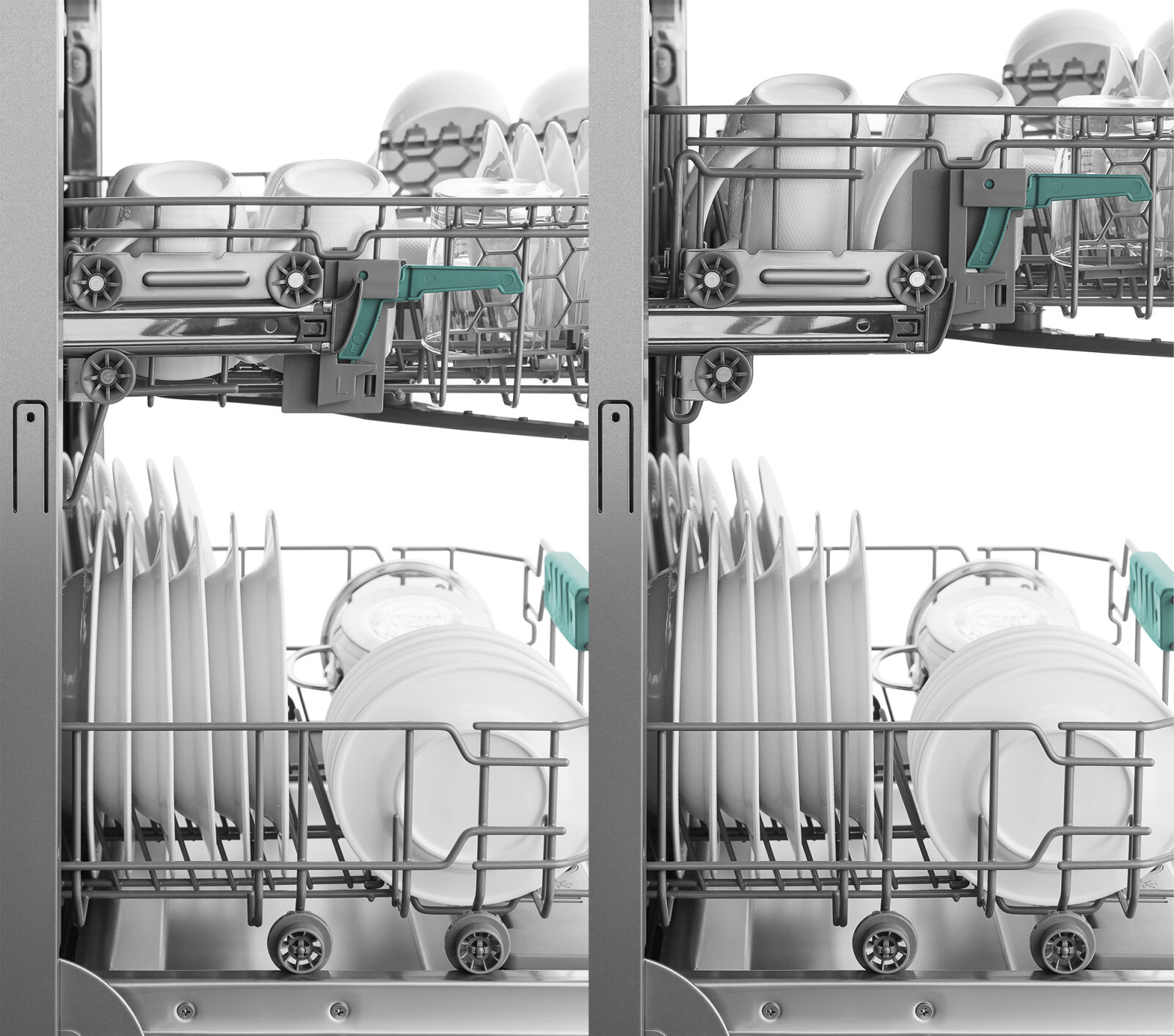 | Плюсы: | Луч на полу. Отсек для столовых приборов. Регулируемая высота средней корзины. Подстветка |