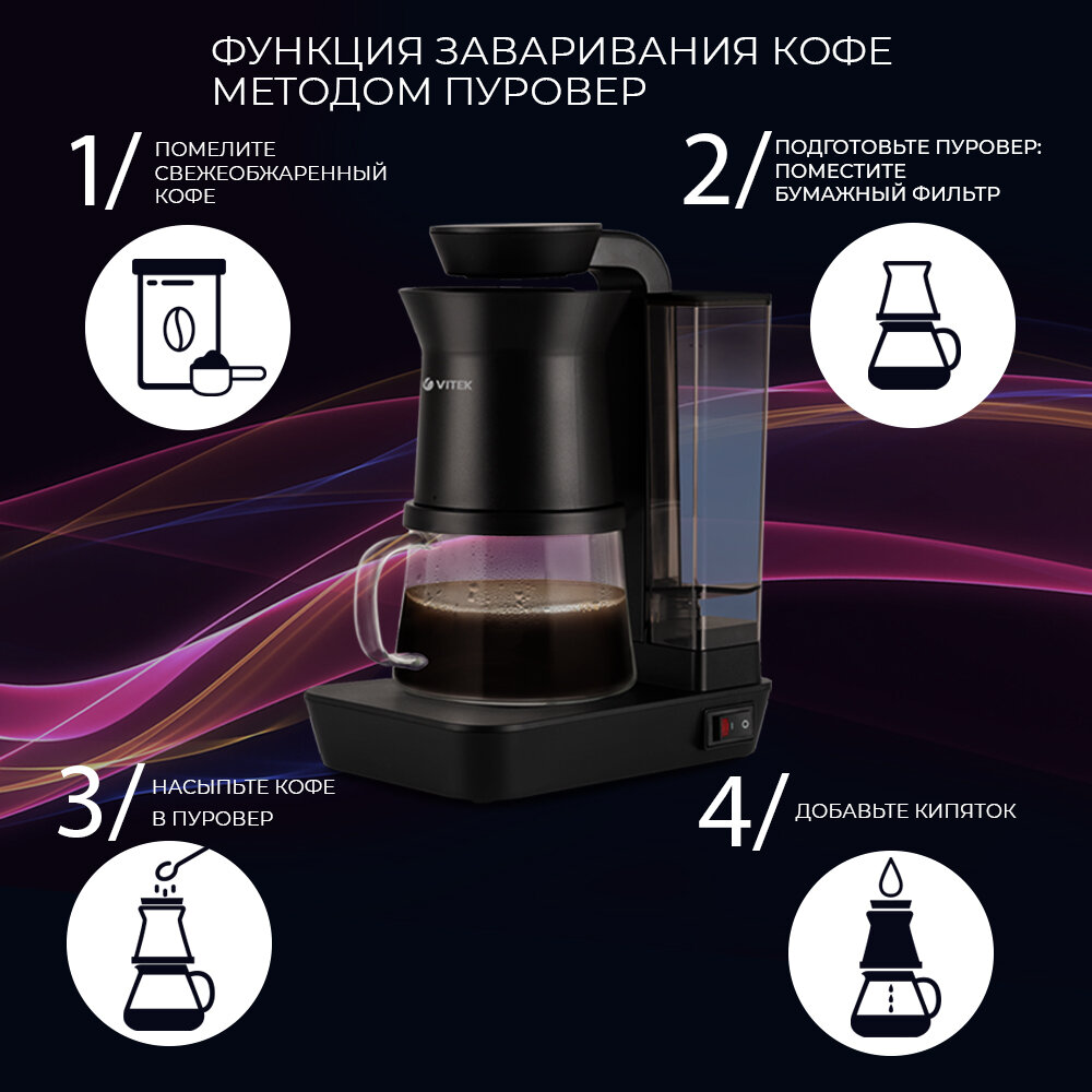 Кофеварка капельная Vitek Metropolis VT-8381 (mc) черный . интересное: