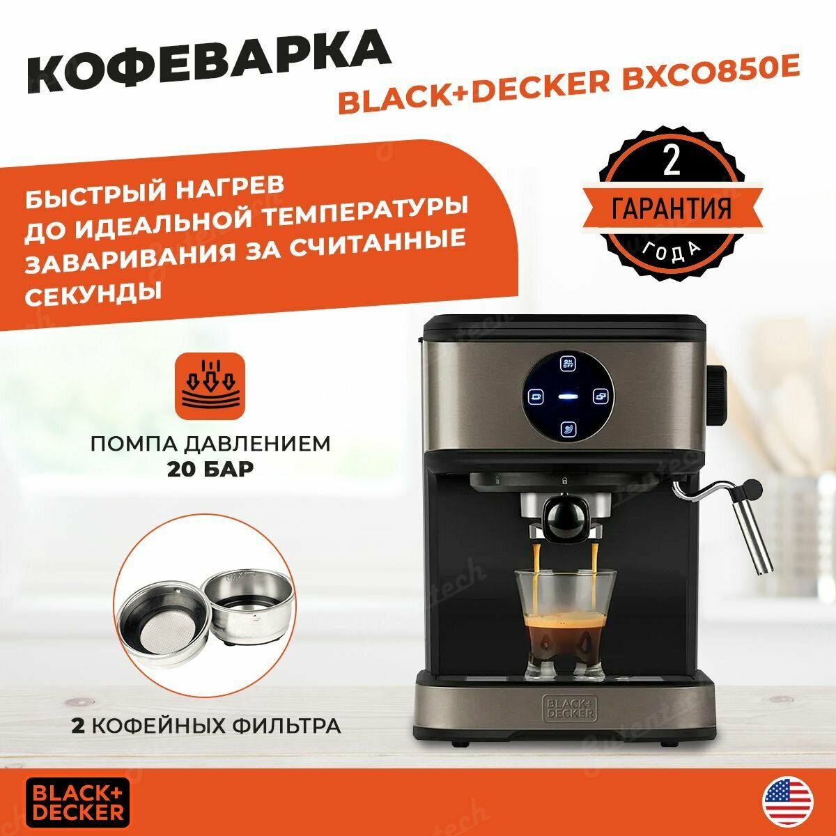 Кофеварка рожковая BLACK+DECKER BXCO850E, черный/серый интересное: