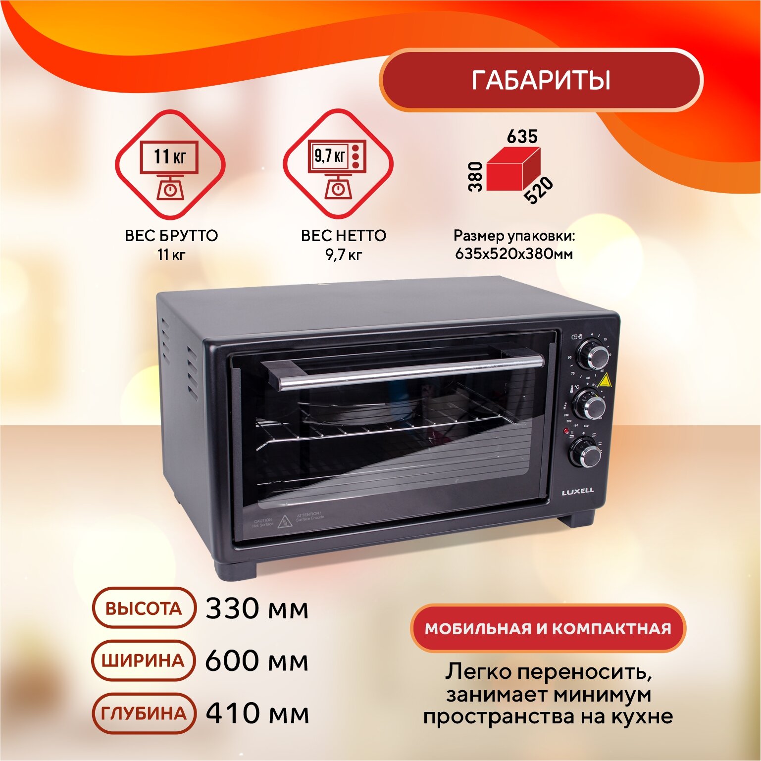 Мини-печь Luxell Mo-46bl .