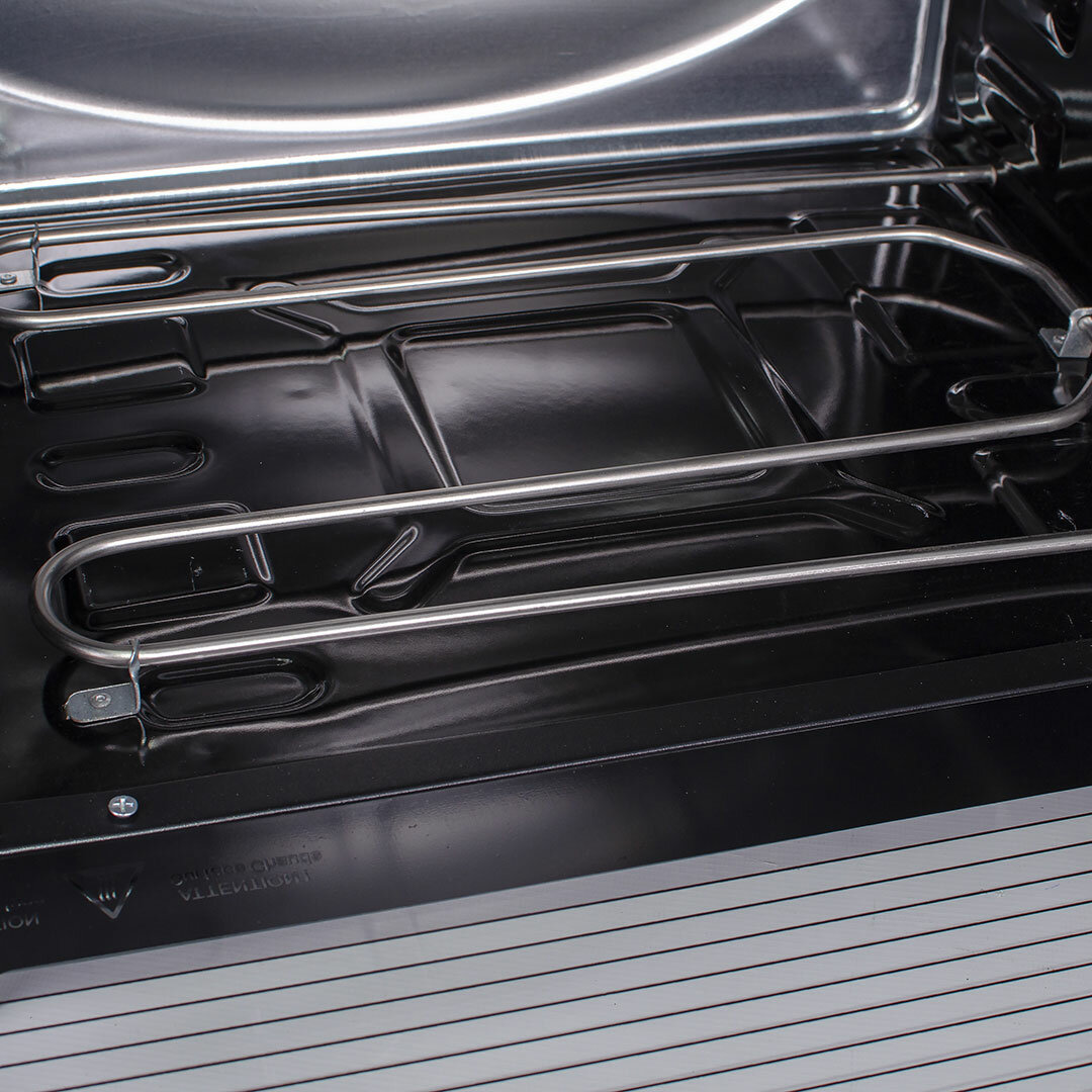 | Плюсы: | Объемная камера (46 литров), нижний + верхний нагрев, подсветка, простота в использовании, в комплекте два противня и решётка, мощная, быстро нагревается. |