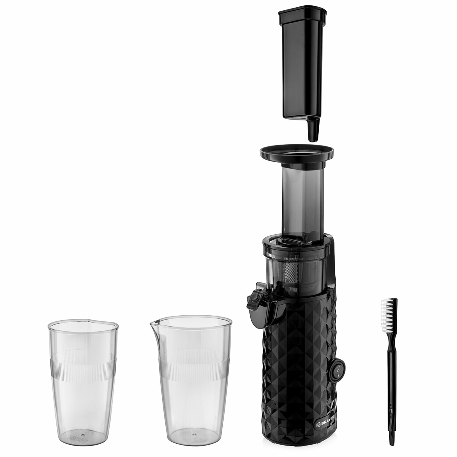 Соковыжималка шнековая BRAYER BR1701, 130 Вт, функция реверс, контейнер для сока 0,6 л, черная
