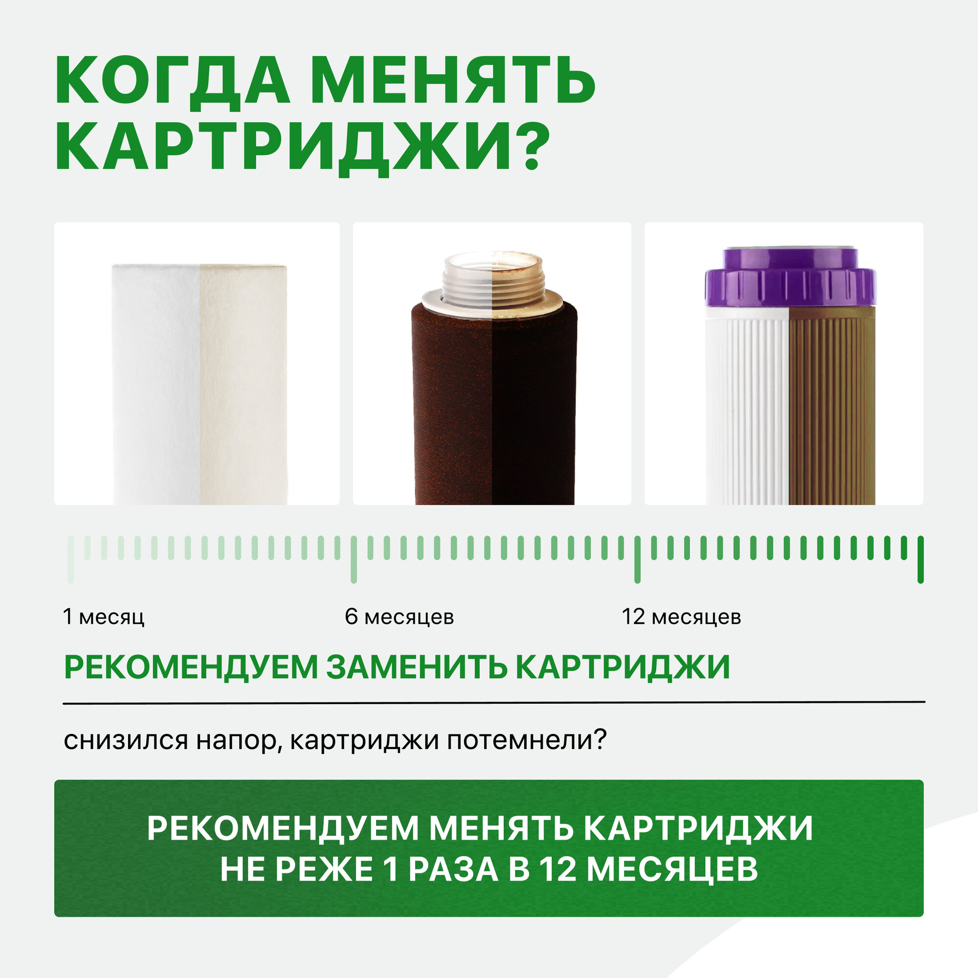 | Отзыв: | Покупаю постоянно, претензий нет. Желательно менять угольный фильтр раз в полгода, остальные два фильтра меняю раз в год. Это мои наблюдения по состоянию картриджей. |