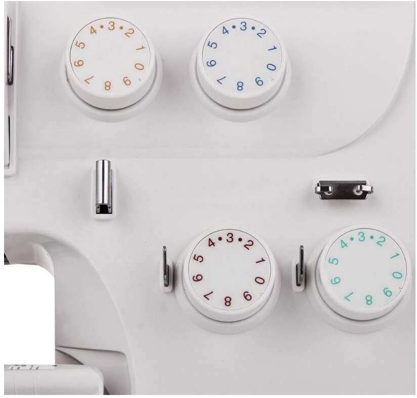 | Плюсы: | Легкая заправка нитей, регуляторы натяжения снаружи , достаточно мощный для бытового оверлока |