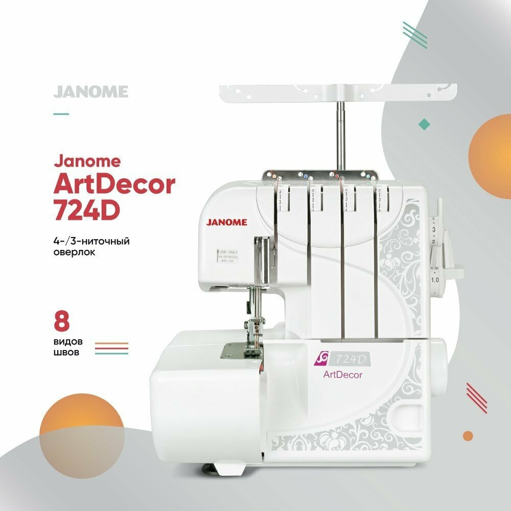 Швейная машина Оверлок Janome ArtDecor 724D бело-серебристый / Машинка Оверлок для шитья 8 видов швов / Швейный оверлок 724 D интересное: