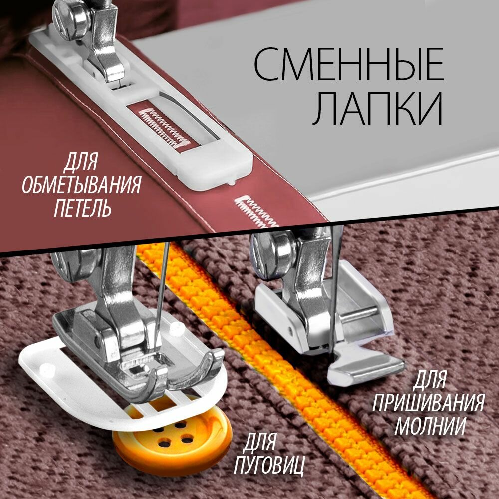 | Плюсы: | Уровень громкости при шитьё, двойная игла в комплекте, оптимальное количество строчек, лапка для петель и лапка для молний, рукавная платформа |