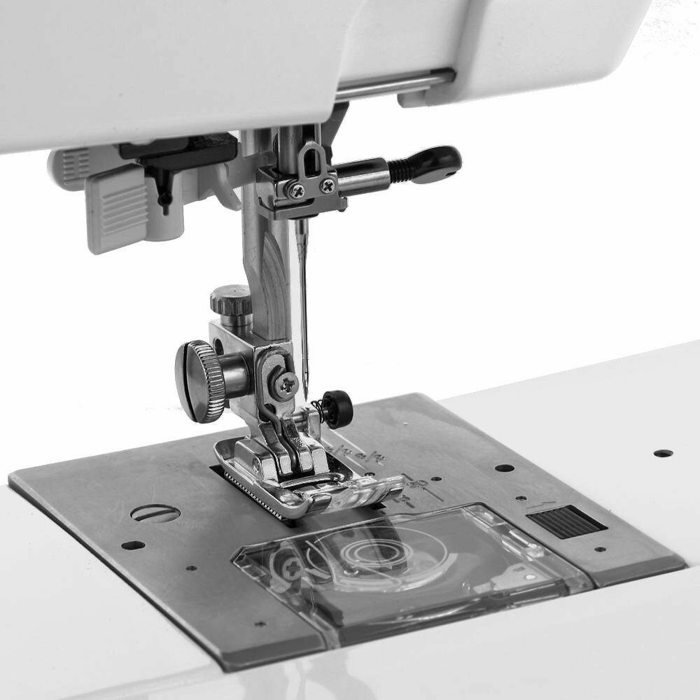 | Плюсы: | Хорошая машина, с дополнительным подъемом лапки и довольно широким зиг-загом. Ротационный челнок. |