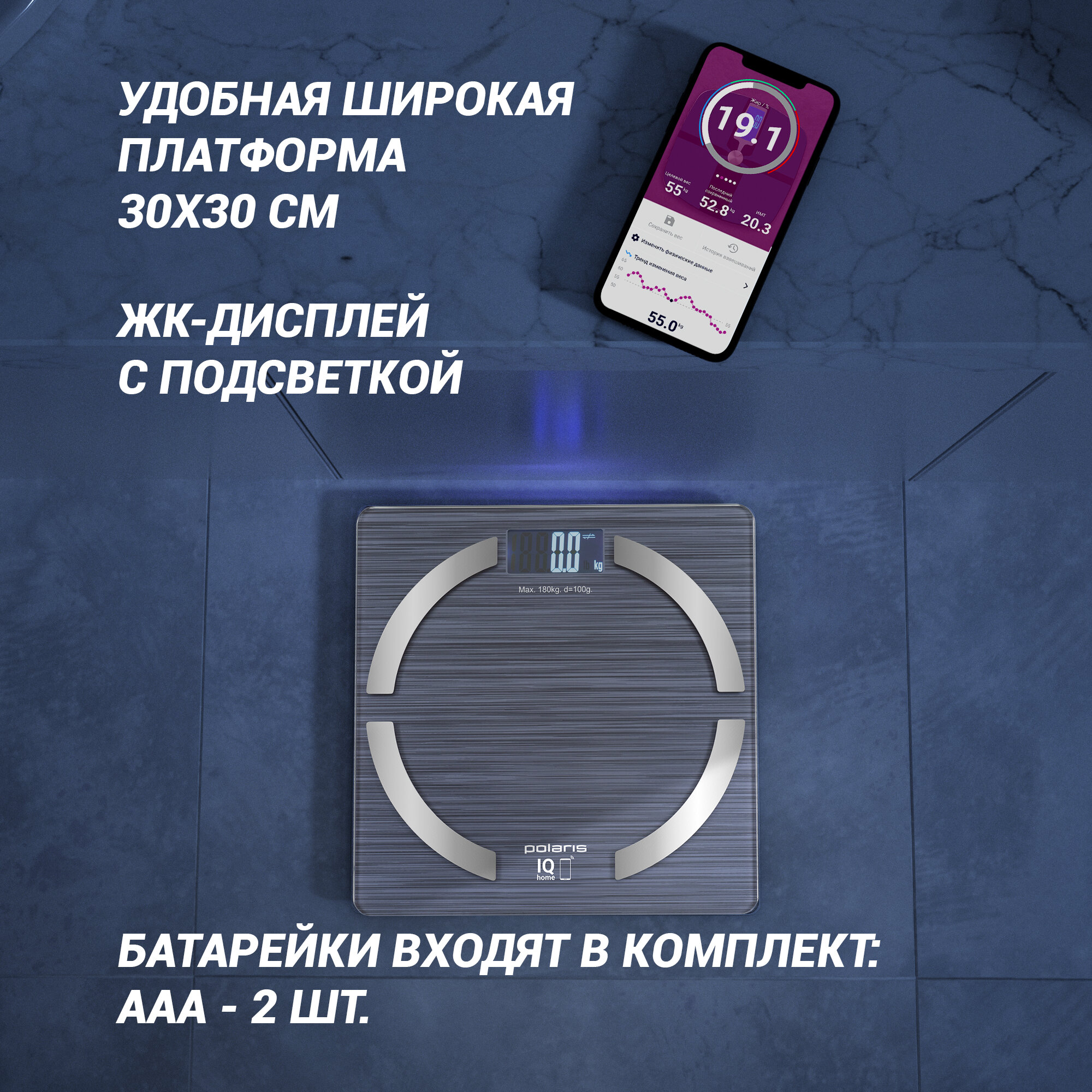 Весы напольные PolarisPWS 1886 IQ Home серебряный .
