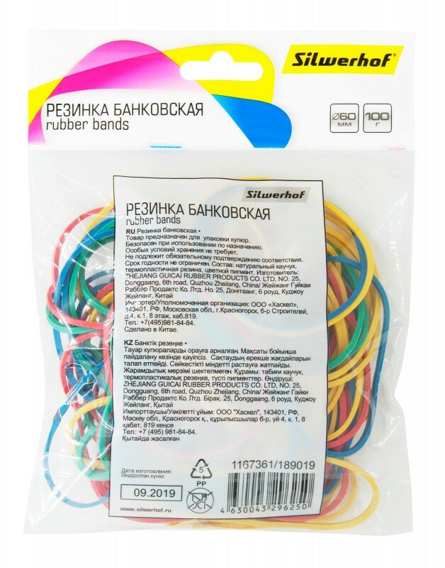 Резинки для купюр Silwerhof 189020 d60мм 2мм 1000гр ассорти пластиковый пакет