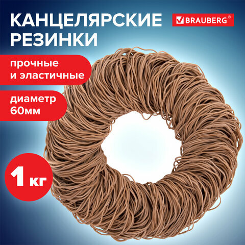 Резинки канцелярские BRAUBERG диаметр 60 мм, 1000 г натуральный 1000 г