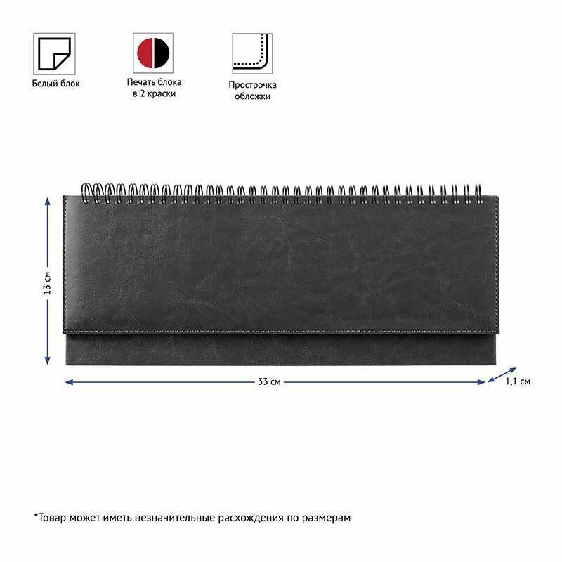 Планинг недатированный OfficeSpace 330х130 мм, 56 листов, кожзам, "Nebraska", черный (Pn56_25230)