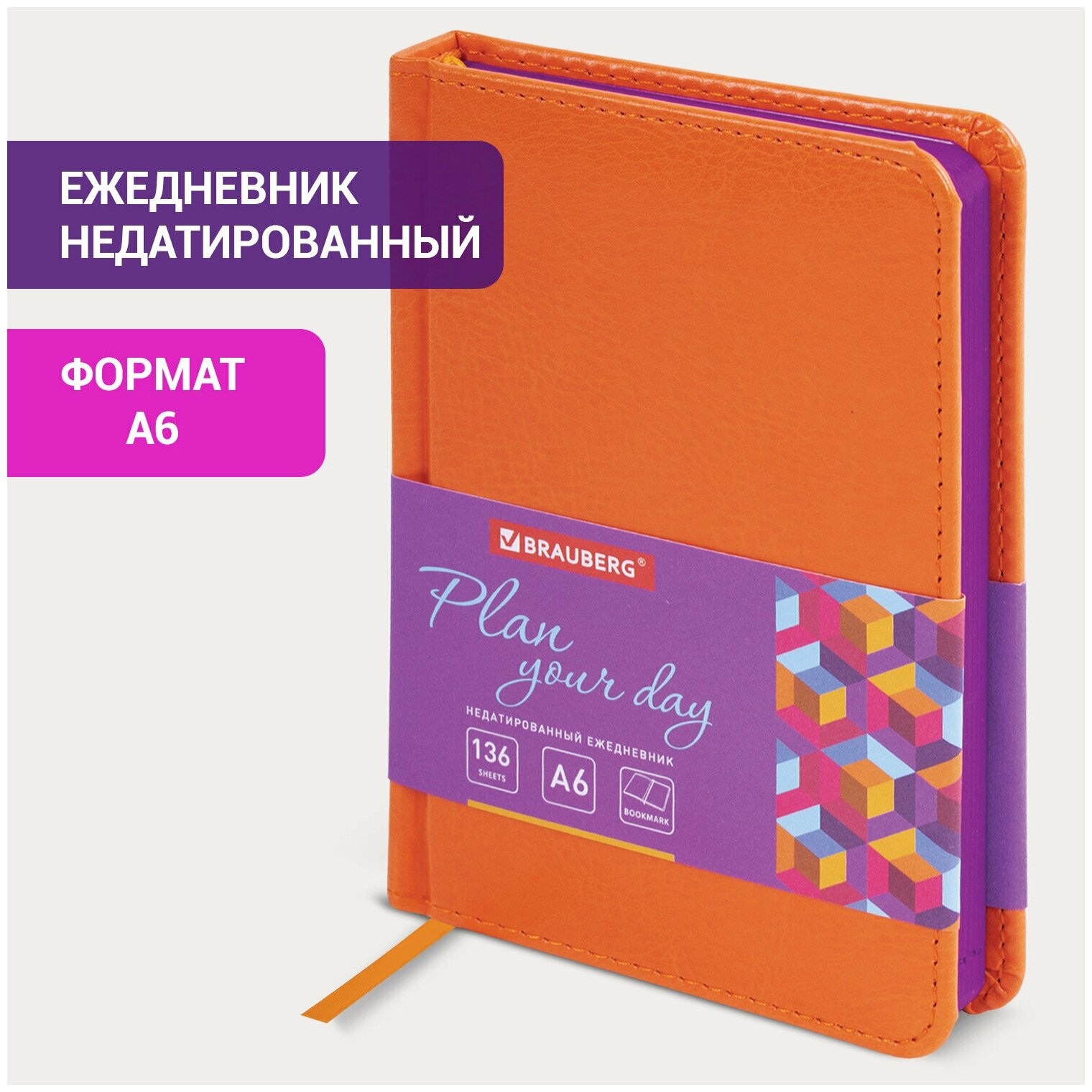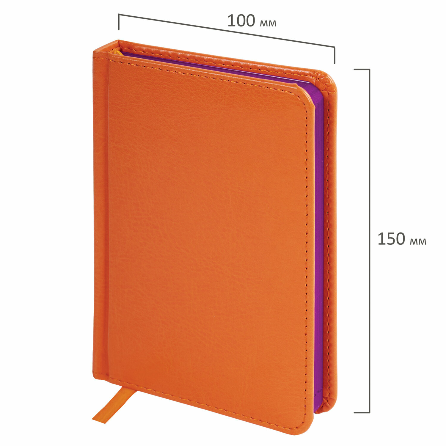 Ежедневник недатированный малый формат 100×150 мм А6 BRAUBERG «Rainbow» под кожу, 136 л., оранжевый, 111688 /Квант продажи 1 ед./