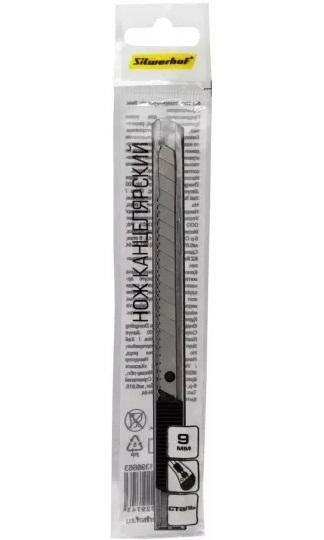 Нож канцелярский Silwerhof шир.лез.9мм выдвижное лезвие фиксатор сталь серебристый пакет с европод.