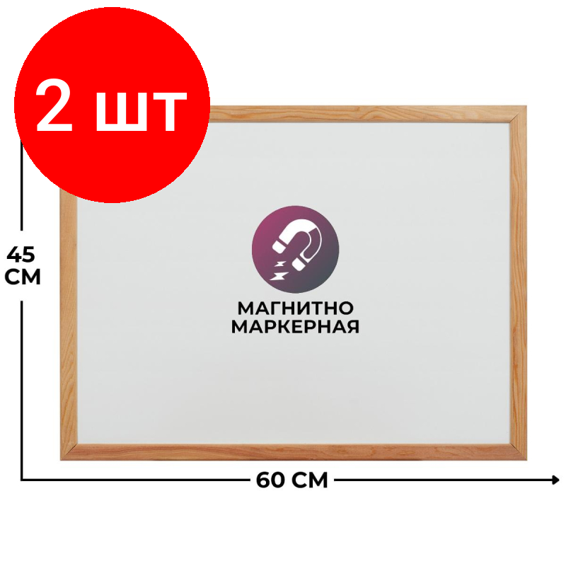 Комплект 2 штук, Доска магнитно-маркерная 45х60 Attache Wood дерев. рама