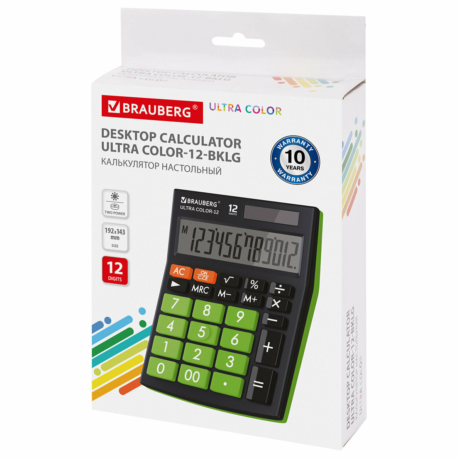 Калькулятор настольный BRAUBERG ULTRA COLOR-12-BKLG (192x143 мм), 12 разрядов, двойное питание, черно-салатовы