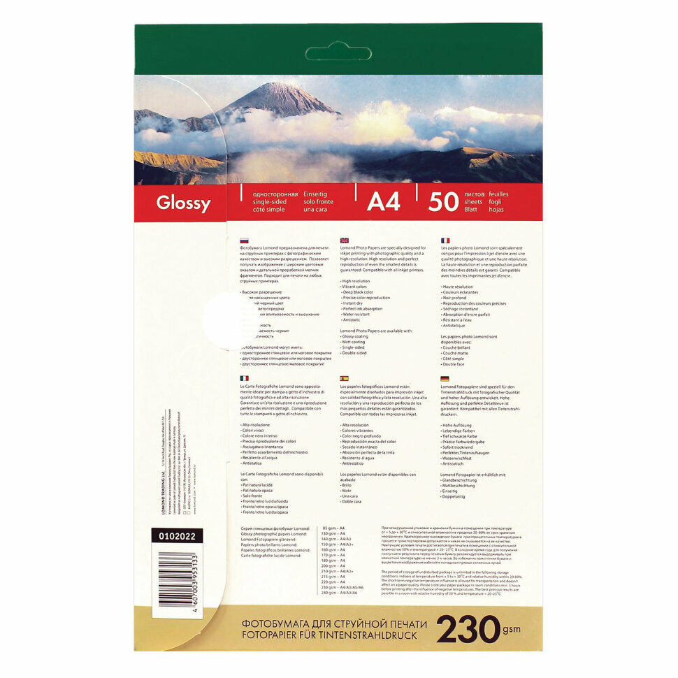 Ниже Вы можете прочитать отзывы на Фотобумага A4 230 г/м² глянцевая, 50 листов, односторонняя Lomond (0102022), ознакомится с подробными характеристиками, посмотреть интересные обзоры и фотографии на Фотобумага A4 230 г/м² глянцевая, 50 листов, односторонняя Lomond (0102022).