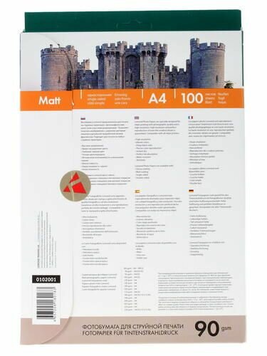 Фотобумага для струйной печати А4, 100 листов 90 г/м2, односторонняя, матовая