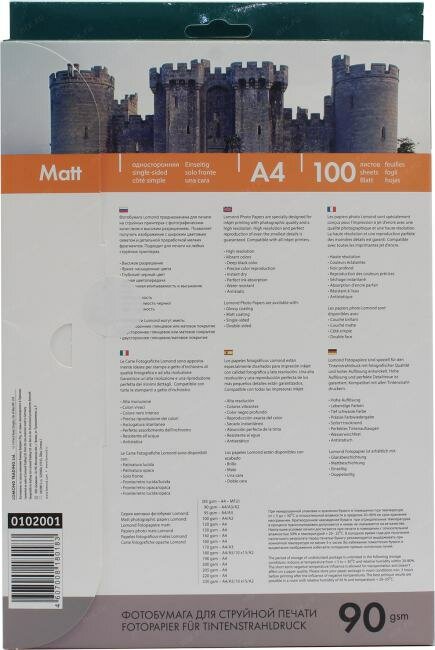 Фотобумага Lomond матовая односторонняя (0102001), A4, 90 г/м2, 100 л.