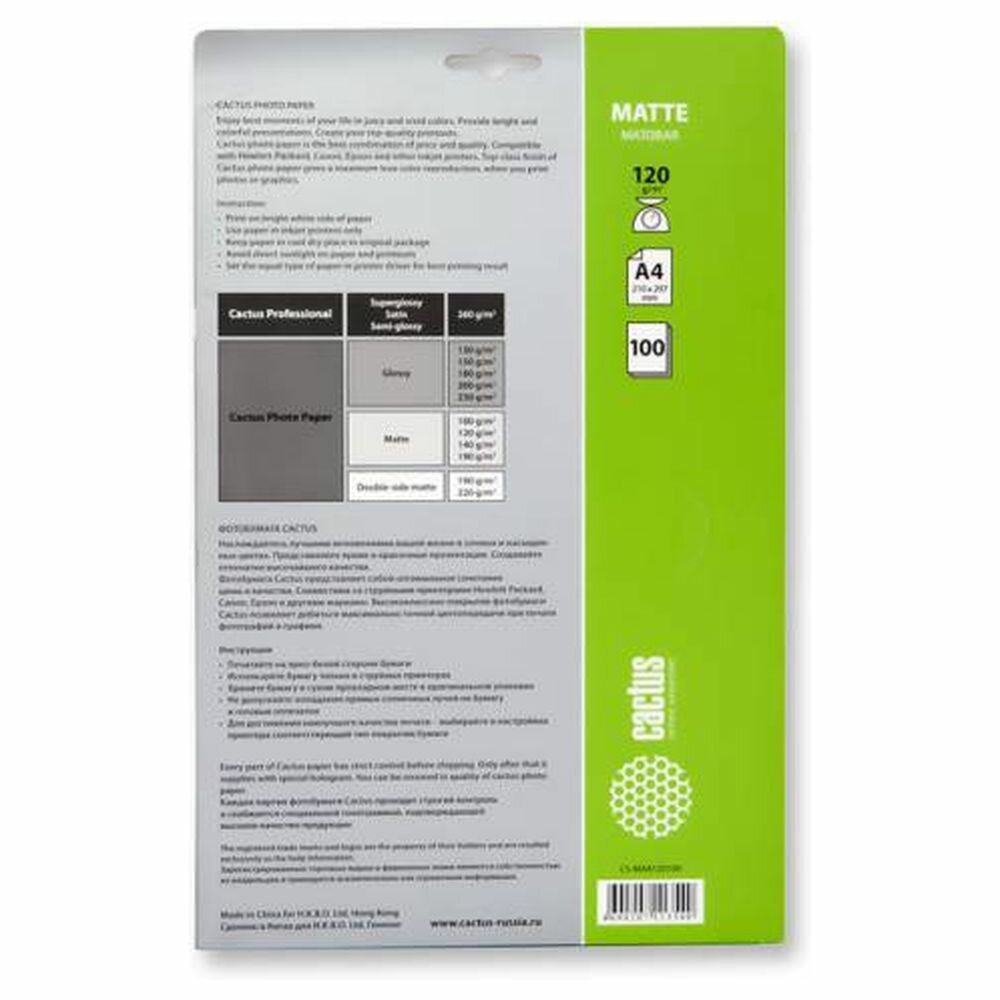 Фотобумага Cactus CS-MA4120100, матовая, А4, 120 г/м2, 100 листов