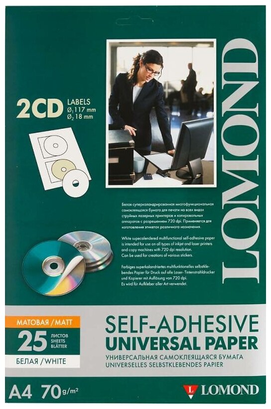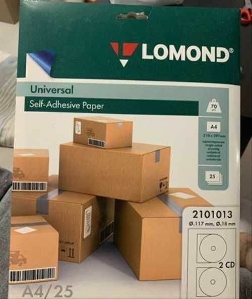 Lomond 2101013 (a4, 25 листов, 2части, 70 г/м2, для CD) бумага универсальная самоклеящаяся .