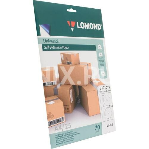 Самоклеящаяся бумага LOMOND универсальная для этикеток, A4, 2 шт для CD/DVD (D117 / D18мм), 70 г/м2, 25 листов