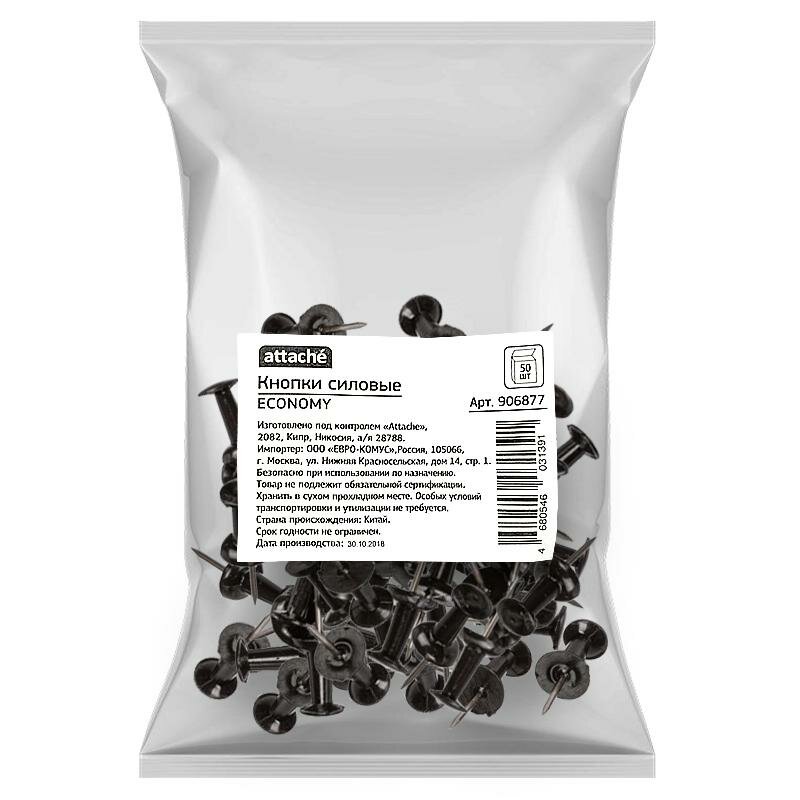 Кнопки д/пробковых досок силовые Attache экономи 50 шт./уп. черн, 906877