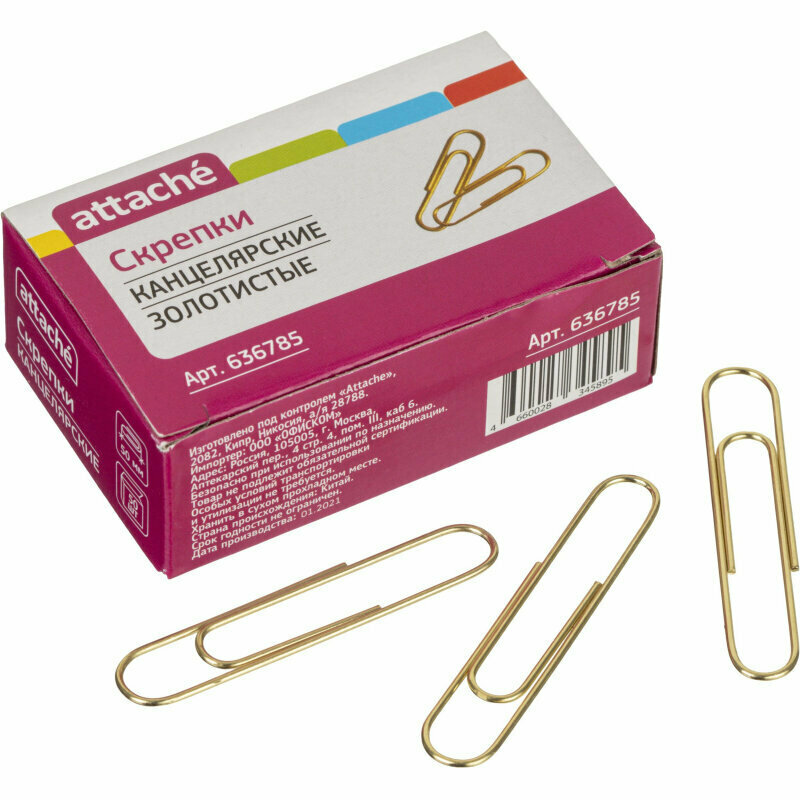 Скрепки Attache металлические золотистые 50 мм (50 штук в упаковке), 636785