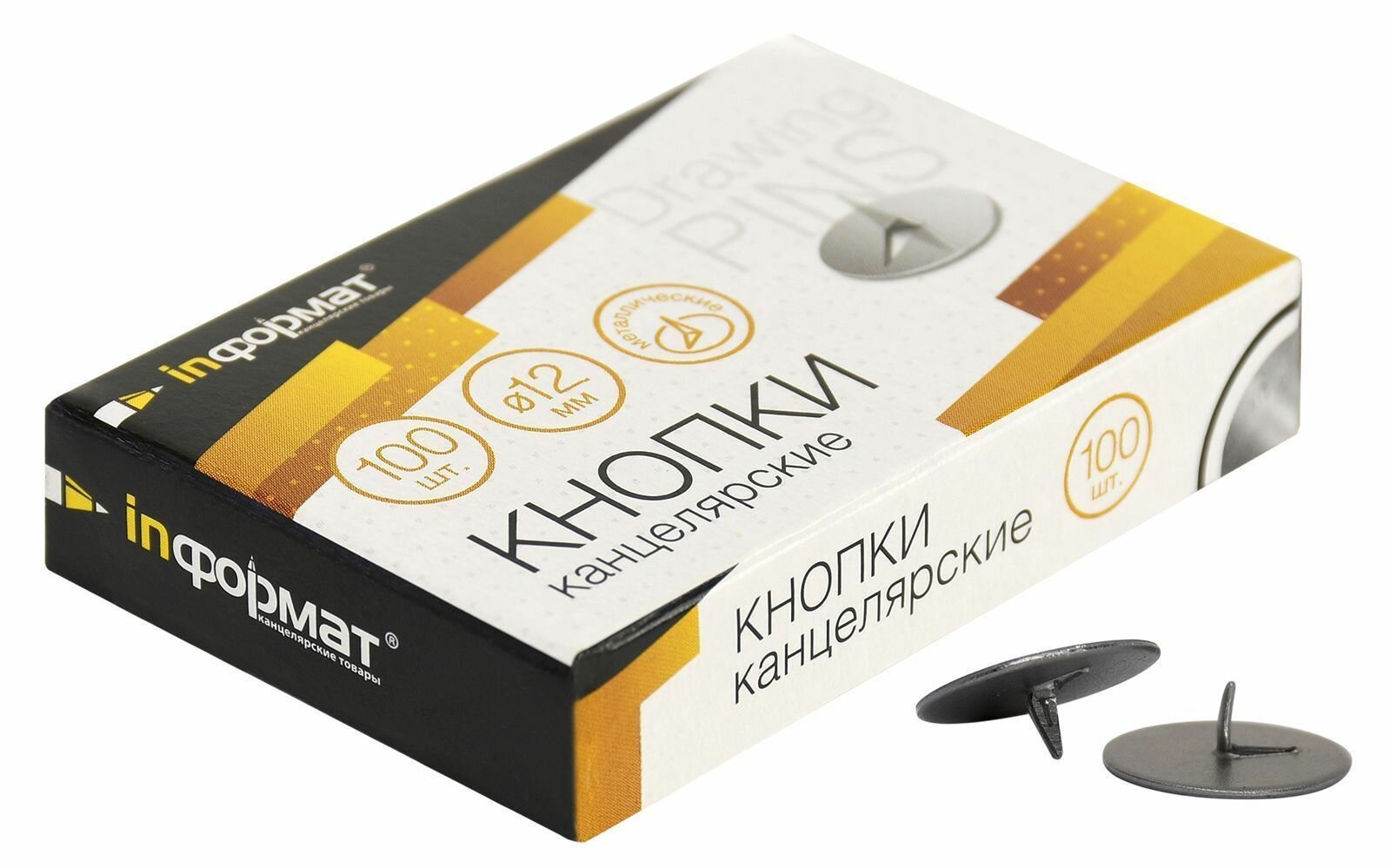 Кнопки канцелярские inформат, d=12мм, металлические, 100шт.
