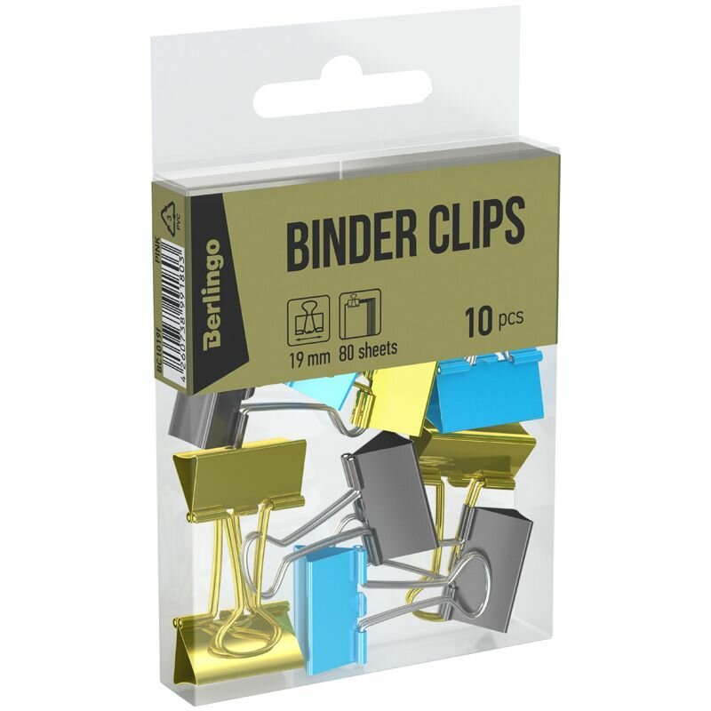 Berlingo Зажимы для бумаг 19 мм BC1019 (10 шт.) голубой