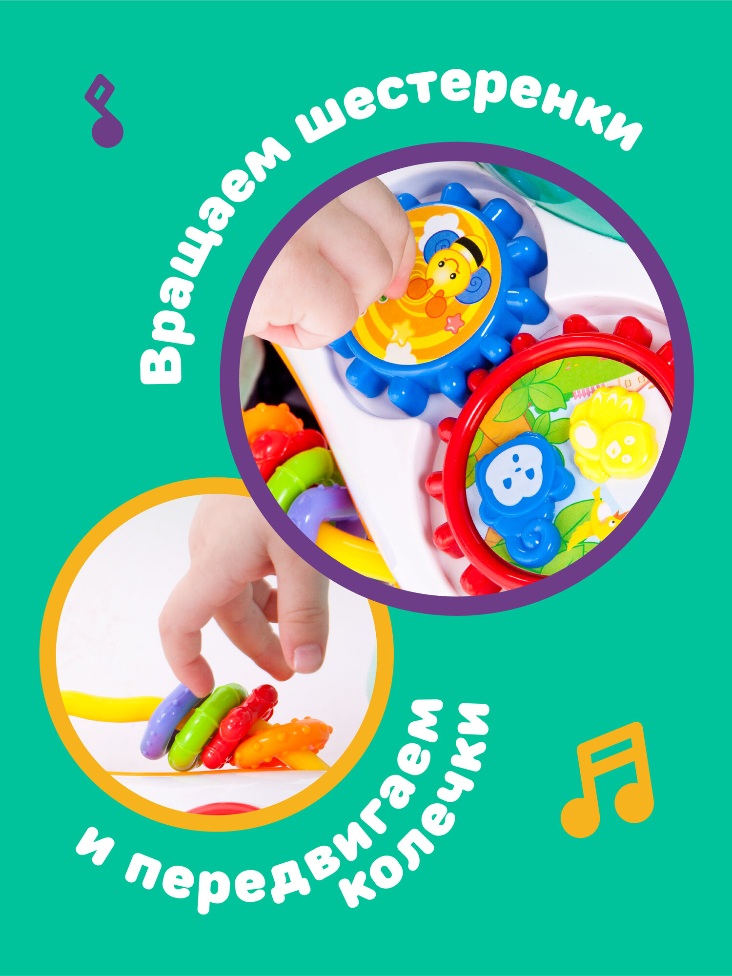 | Развивающие функции | речь и чтение / музыкальный слух и чувство ритма / счет и математика / моторика и ловкость / изучение цветов |