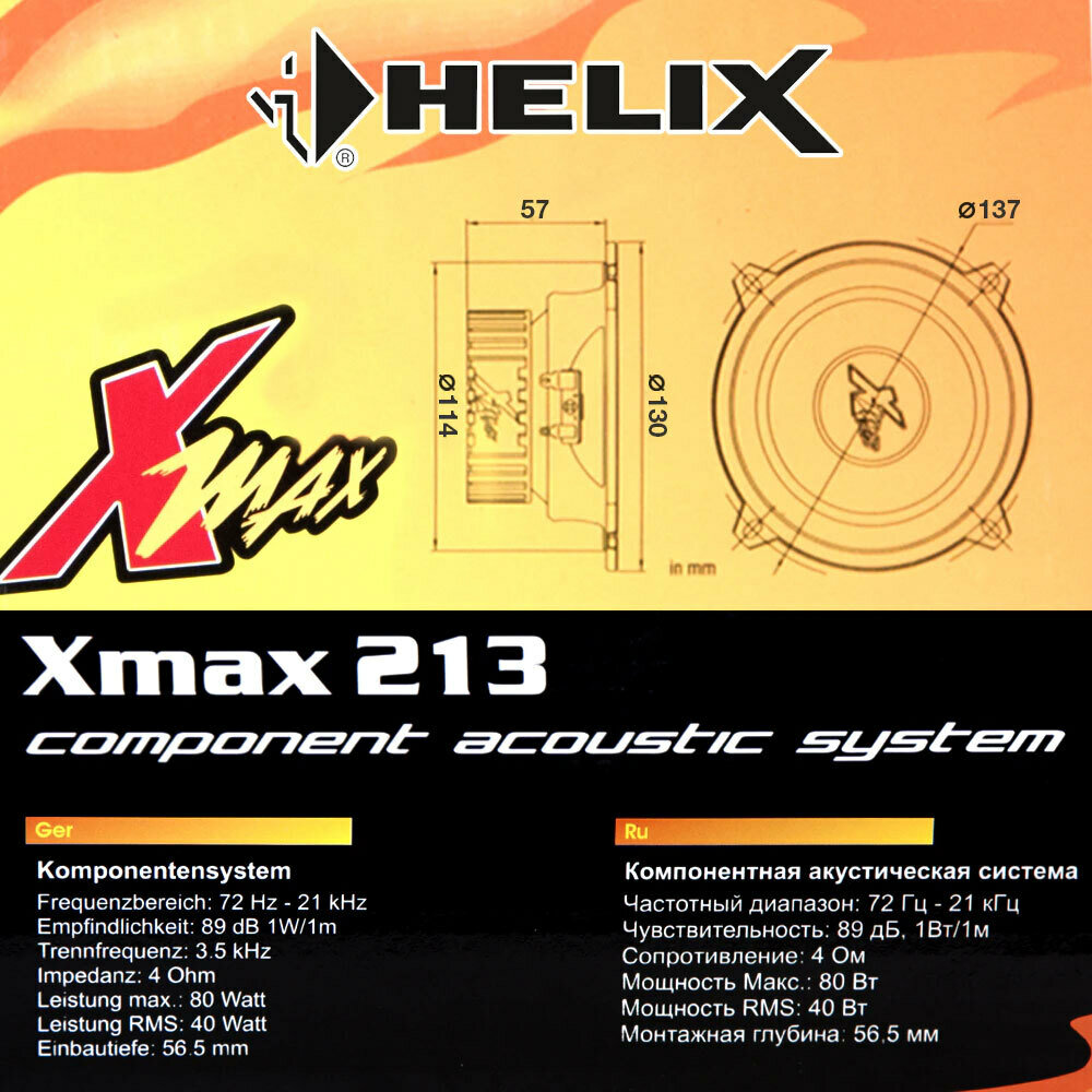 Динамики автомобильные HELIX Xmax 213 5.25 дюймов 13см, компонентные, комплект - 2шт (автоколонки, автодинамики) интересное: