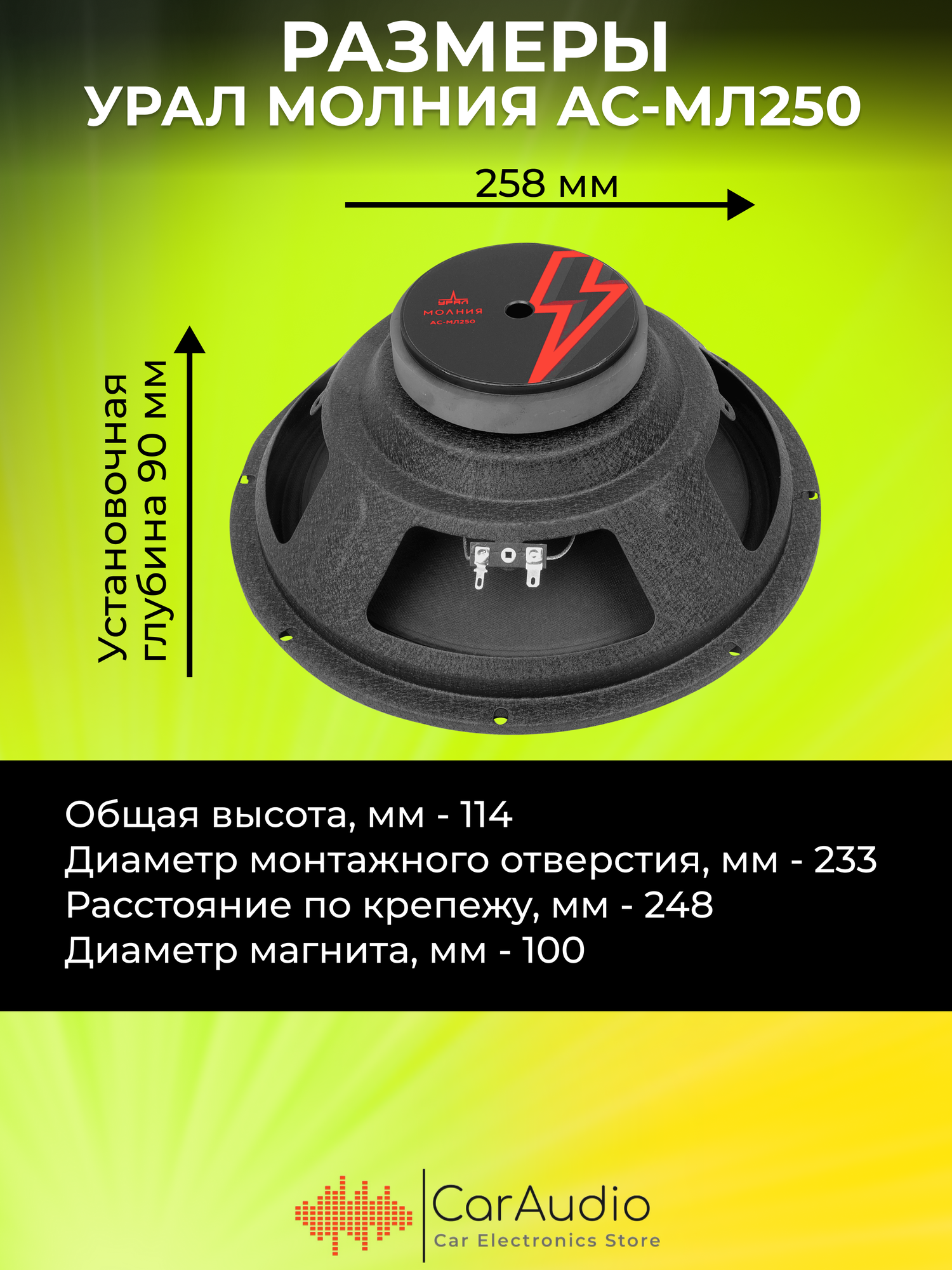 Колонки автомобильные URAL Молния АС-МЛ250, 25 см (10 дюйм.), комплект 2 шт. [урал ас-мл250]