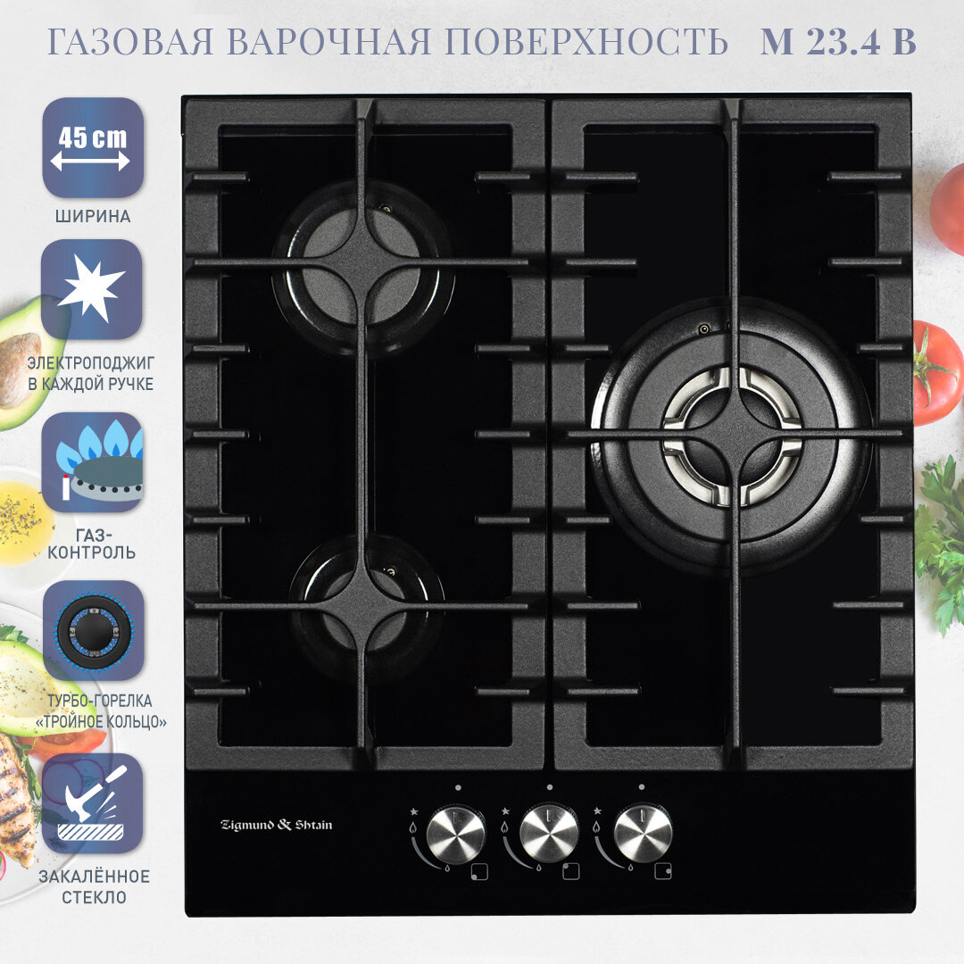 Купить Варочная панель газовая Zigmund&Shtain M 23.4 B /черн., 3-х комф./ Китай