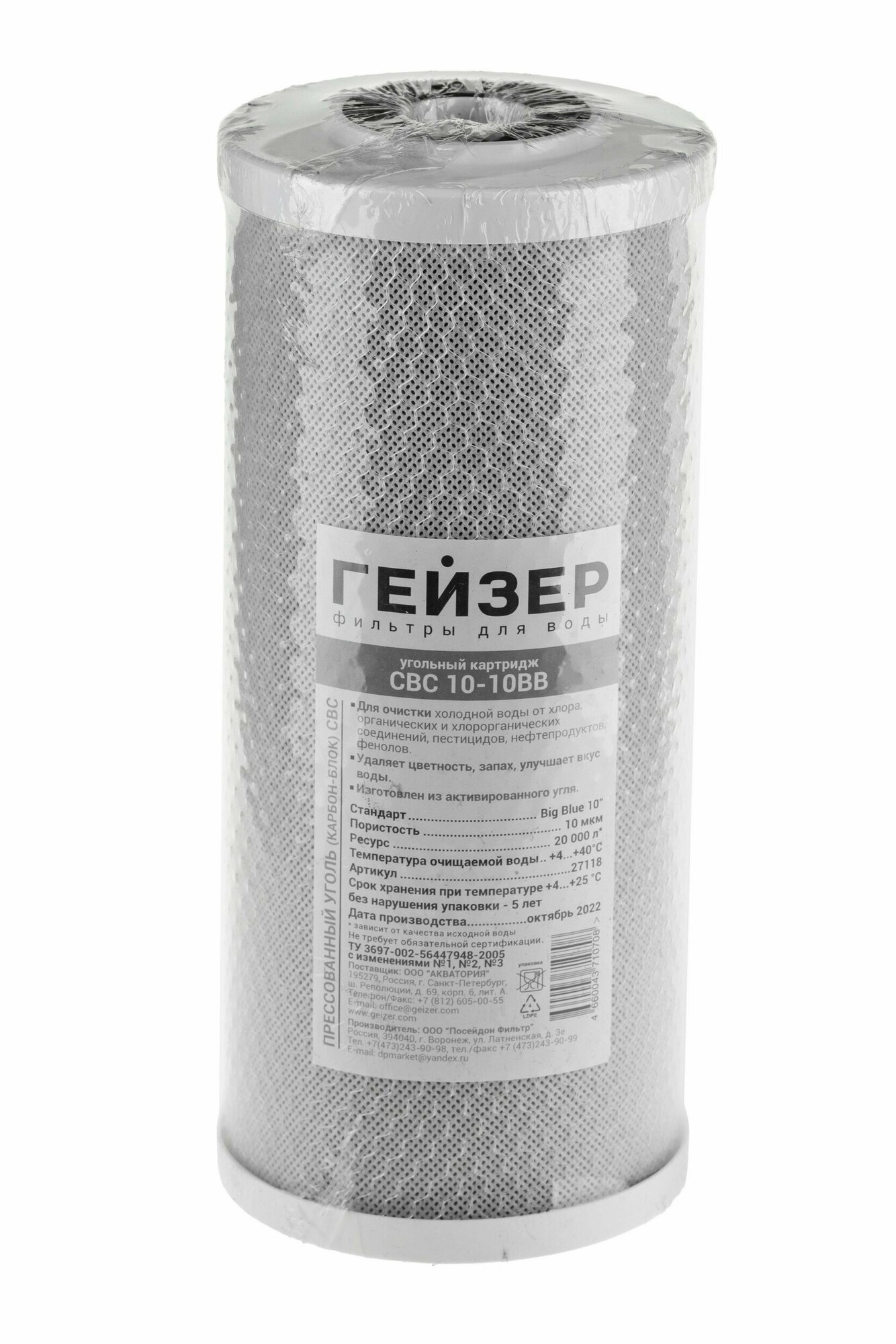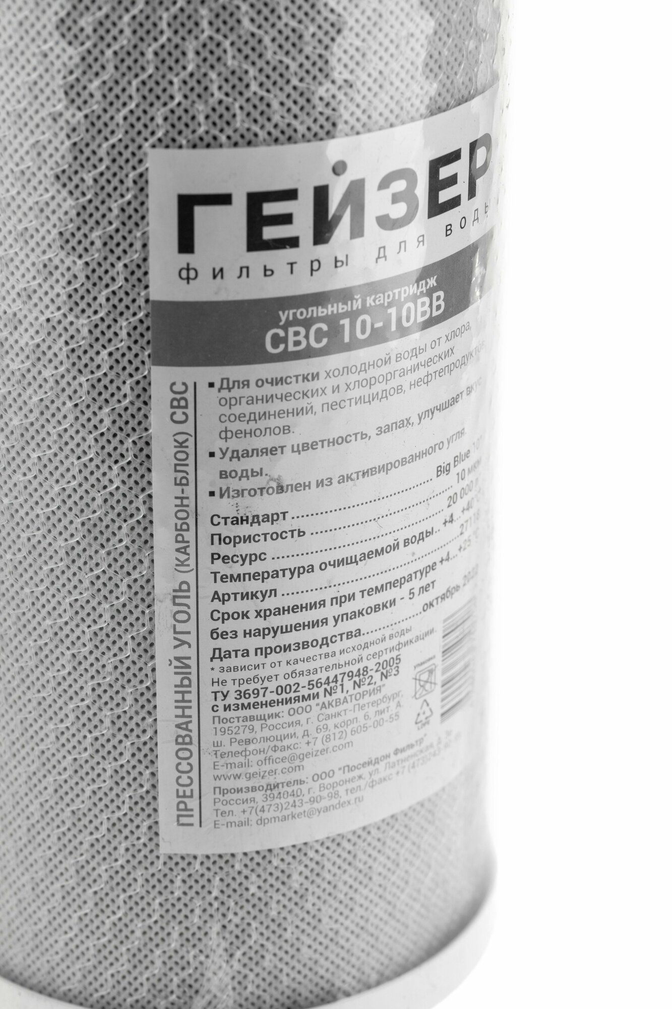ГЕЙЗЕР CBC 10- 10BB Картридж для холодной воды, угольный, 10мкм, арт.27018