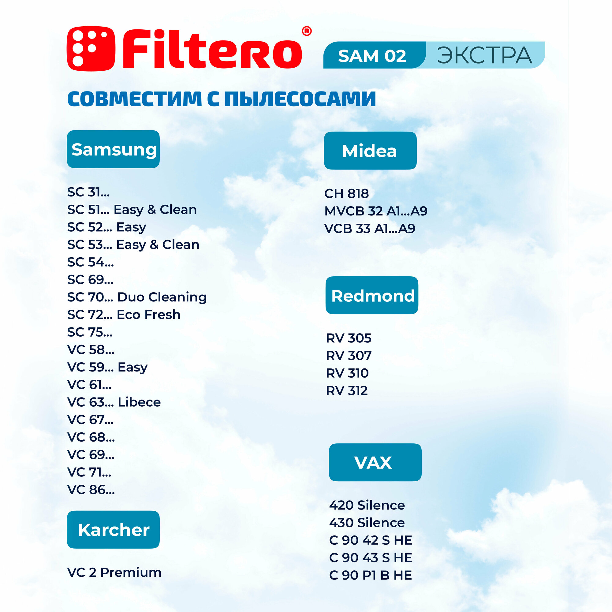 Пылесборники Filtero SAM 02 (4) экстра