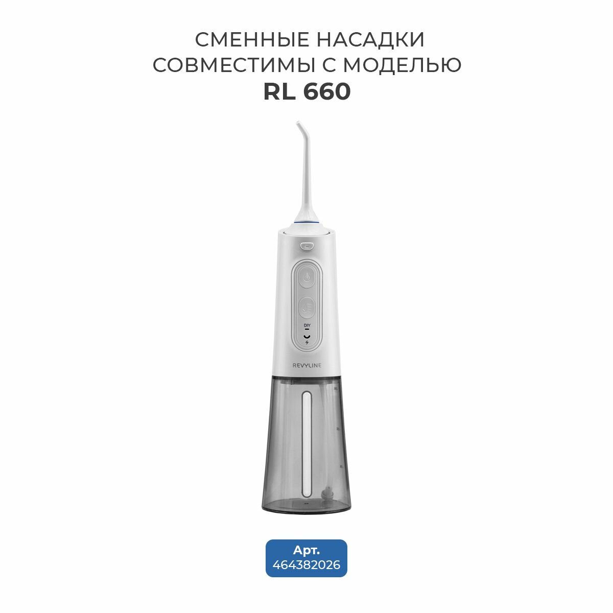 Сменные насадки для ирригатора полости рта Revyline RL 610/660 стандартные, белые,2 шт, Ревилайн