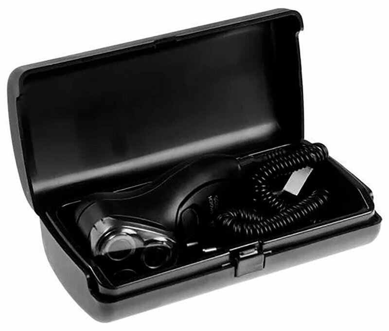 Синхронный двигатель. 6-часовую и 6-дневную щетину бреет с одинаковым равнодушием. Дизайн на первый взгляд кажется несколько нелепым, однако в руке бритва сидит очень удобно, сетевой шнур совершенно не мешает. Низкая цена запчастей. Жесткий футляр |