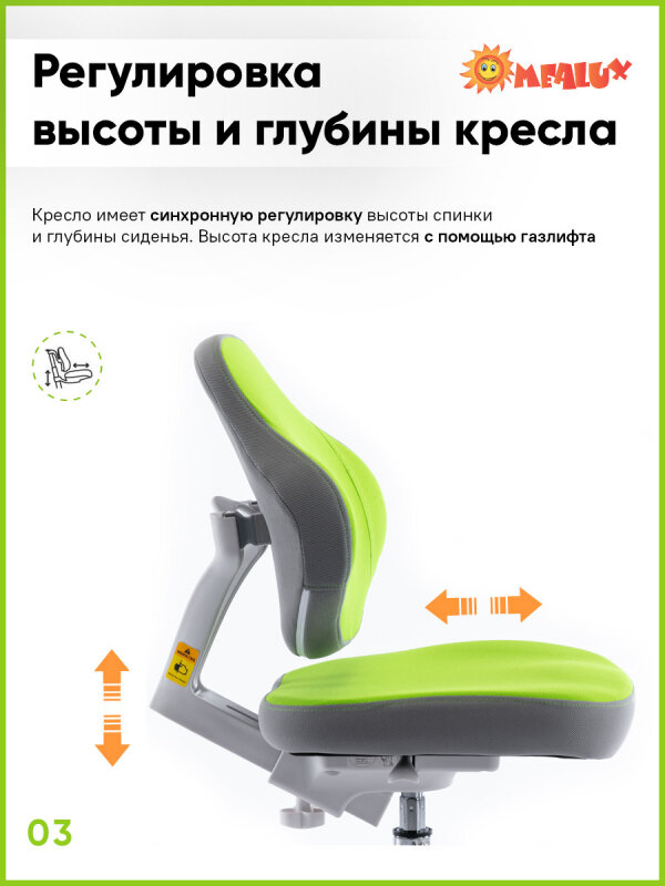 Растущее детское кресло для дома ErgoKids (Y-405) G для обычных и растущих парт + подставка для ног