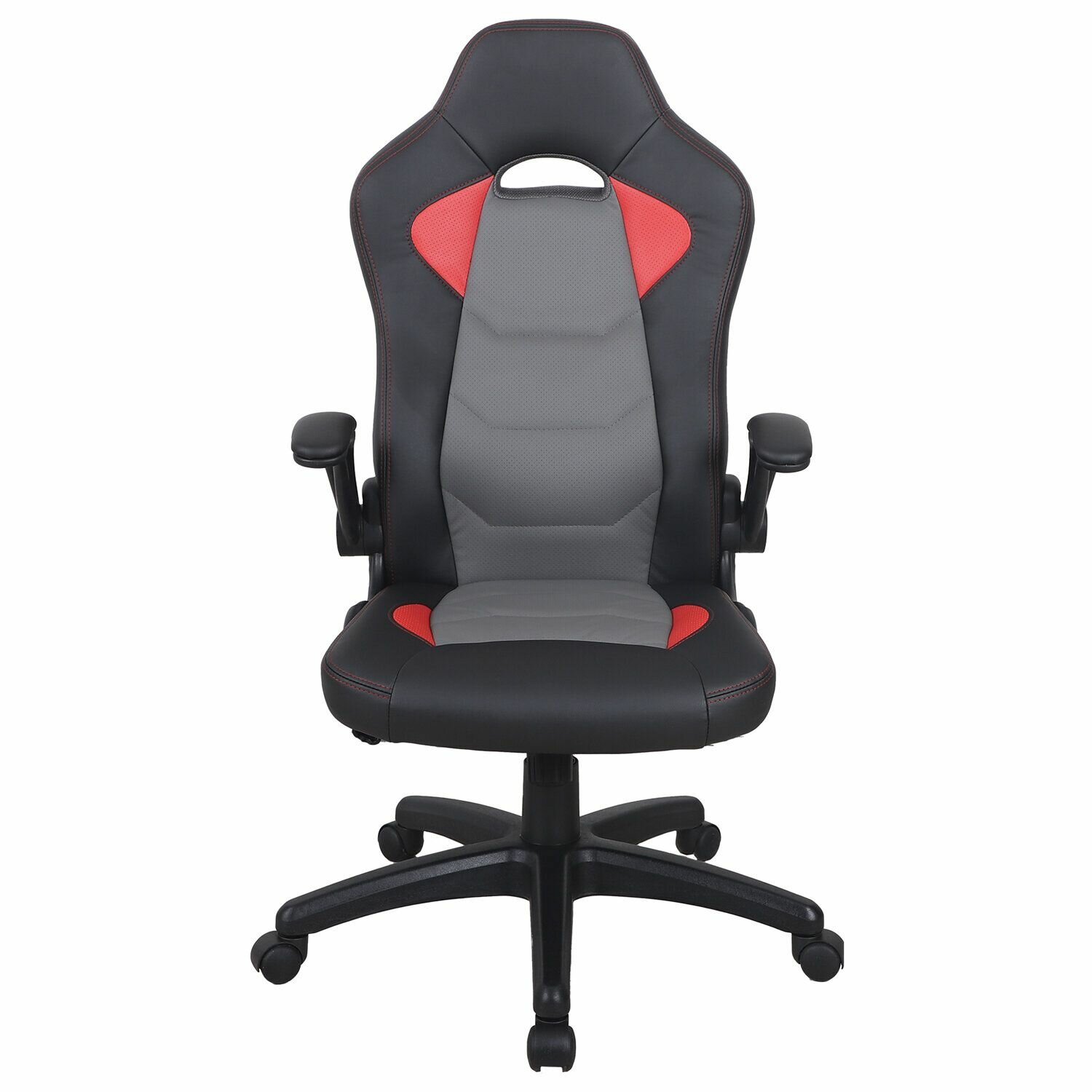 Кресло компьютерное BRABIX Skill GM-005, откидные подлокотники, экокожа, черное/красное, 532496