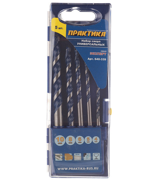 Набор сверл универсальных ПРАКТИКА Эксперт, 5 шт 4,5,6,8,10 мм, 640-339 , 1 шт.