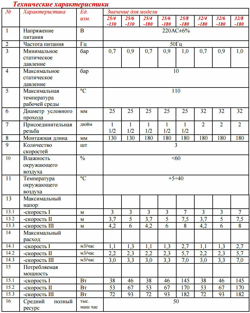 | Дополнительная информация | тип ротора: "мокрый"; максимальная температура окружающей среды: 40 °C; минимальная температура окружающей среды: 5 °C; максимальное статическое давление – 10 бар; присоединительные гайки и провод (115 см, с вилкой) входят в комплект поставки |