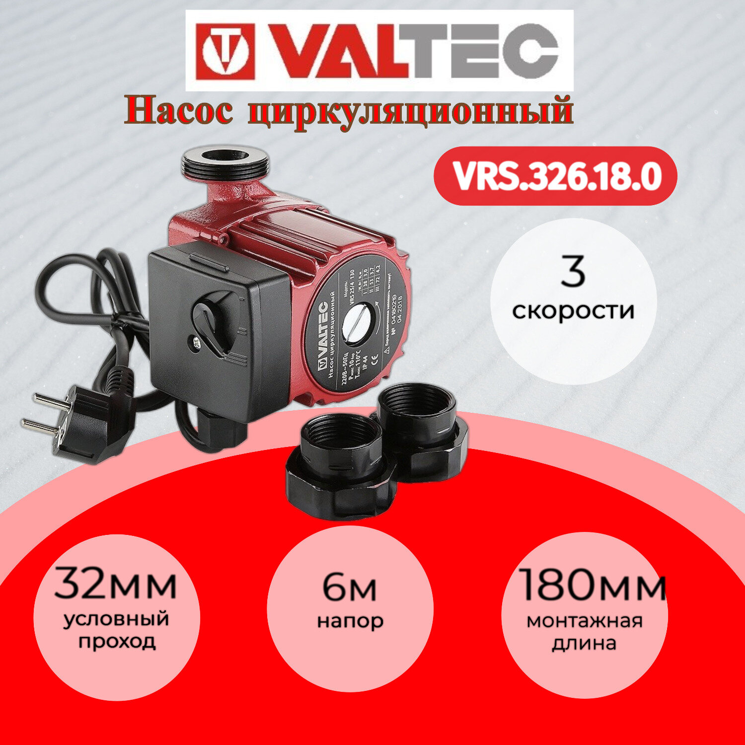 Купить Циркуляционный насос Valtec VRS 32/6-180 с гайками VRS.326.18.0