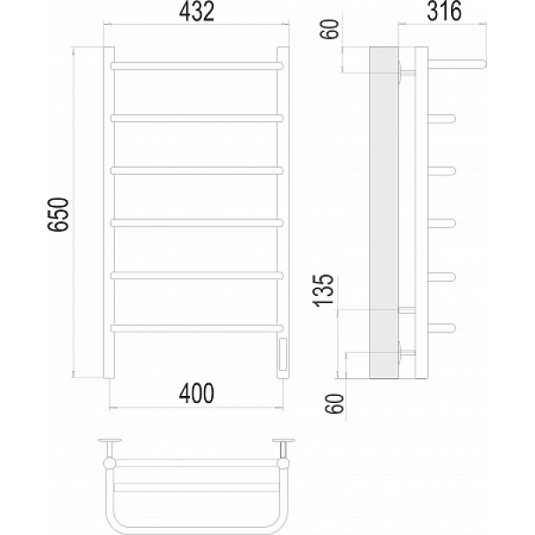 Полка П6 400х650 Электро (quick touch) Полотенцесушитель TERMINUS (терминус)